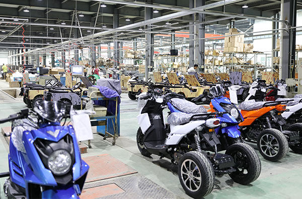 振华工贸现有4条总装生产线、4条喷漆生产线、各类生产设备超过400套,检测设备超过80套,全部设备都属于行业先进设备。年生产能力,休闲摩托车10万辆、电动搬运车5万辆,房车用热水器、燃气灶30万套,摩托车车架6万套,各类摩托车配件30万件。
