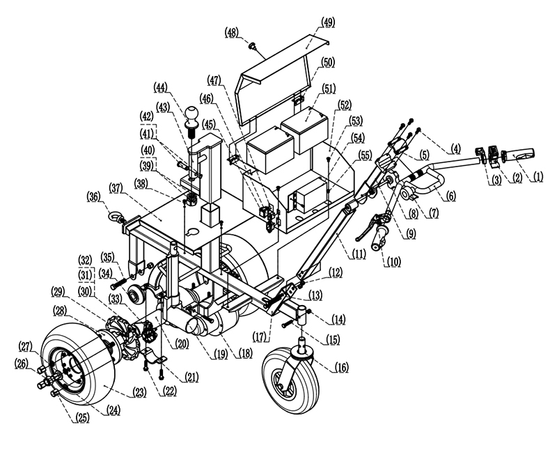电源开关系统: 无级调速手把开关、刹车断电手把、前进倒退开关、快慢档开关、充电插座、电路过载过流保护、电量显示