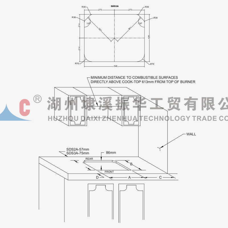 孔尺寸(长*宽*倒角):546mm * 428mm * R70
